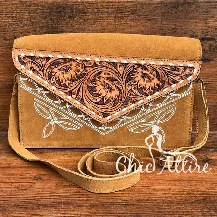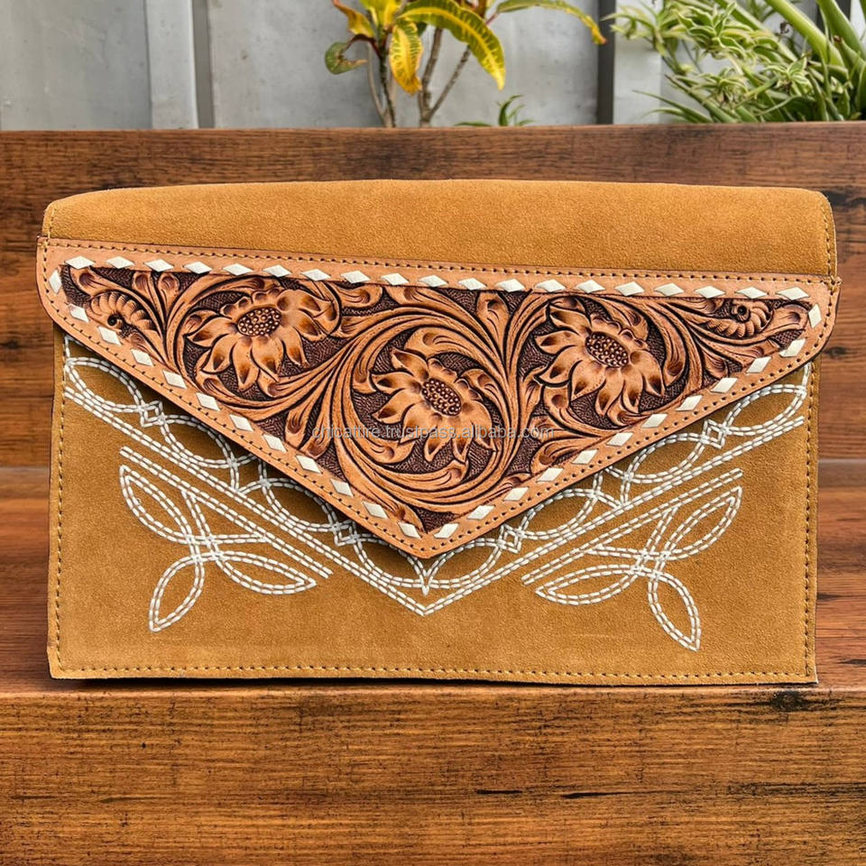 Product name:Hand Tooled Suede Leather Crossbody Envelope Bag