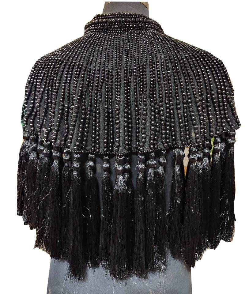 Very Heavy Hand embroidery and shiny hand beaded tassels downside