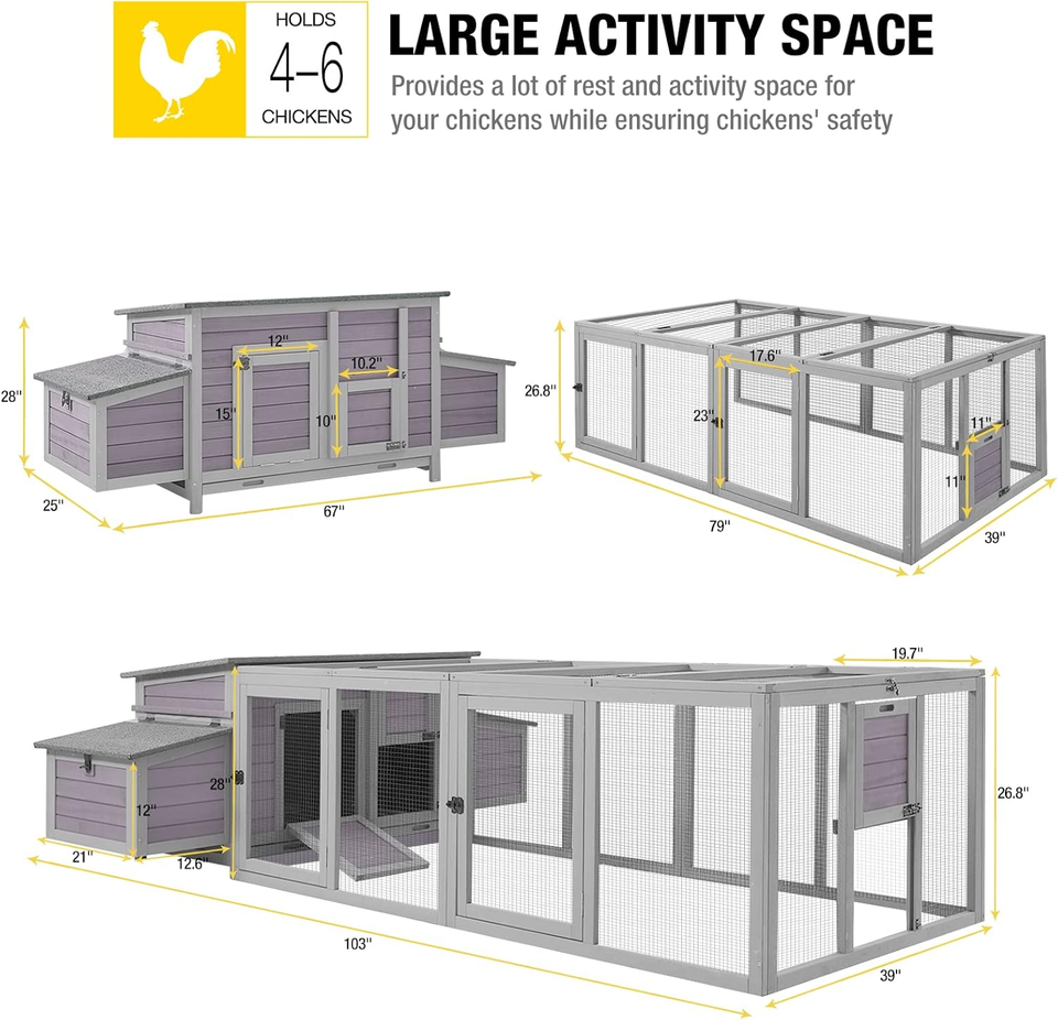 Chicken Coop Wooden Hen House Two Nesting Box with Large Run Outdoor Rabbit Hutch Bunny Cage Poultry Coop Suit for 4-6 Chickens
