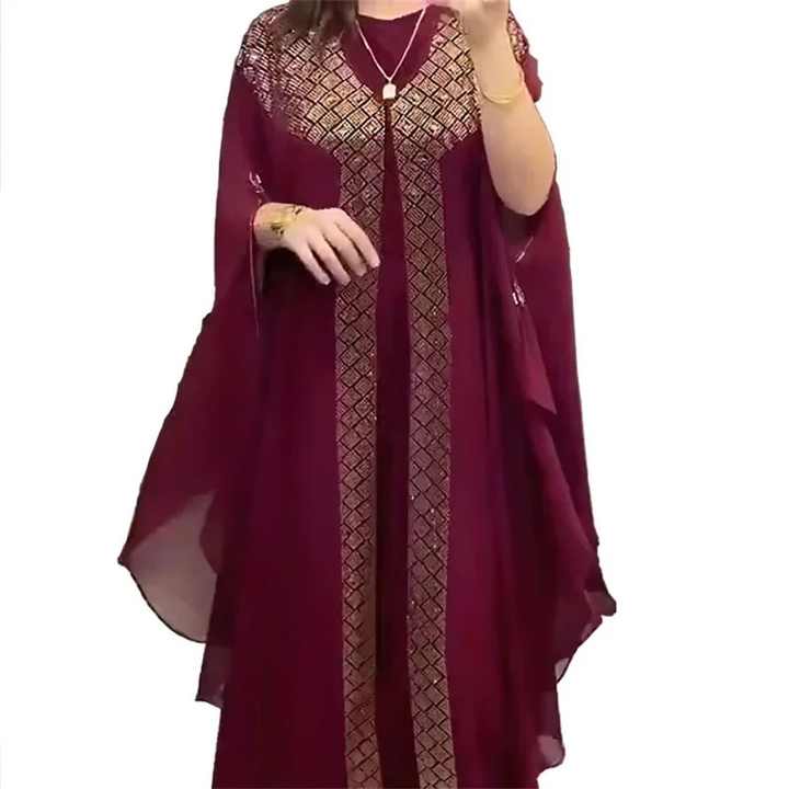 Chiffon Polyester Breathable Plus Size Modesty Rhinestone Abaya Kaftan Islamic Clothing Muslim Women Party Gown