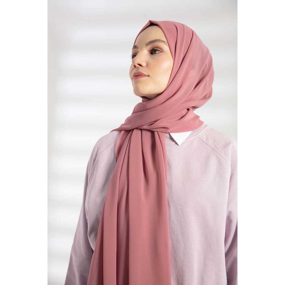 Chiffon Scarf Rose Pink Plain Dyed Long Lightweight Women 100% Polyester