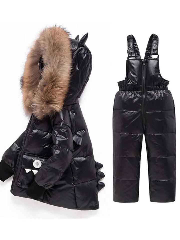 Child Parka Real Fur Hooded Boys Baby Overalls Girl Clothes Winter Kids Dinosaur Coat Snowsuit Snow Clothing Down Jackets Set