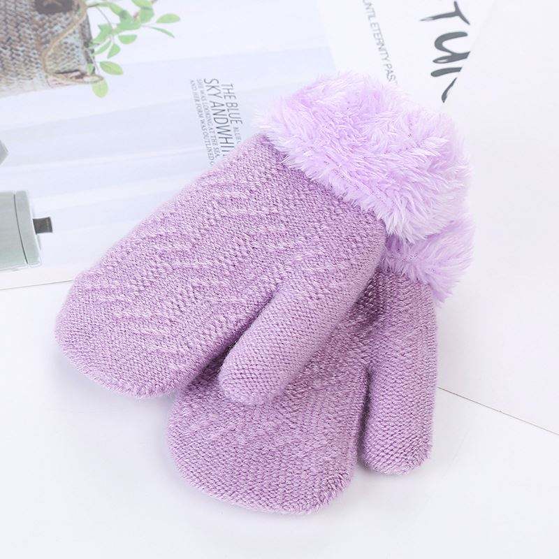 Children Aged 0-3 Winter Fleece-lined Thickened Fleece Gloves Baby Warm Twill Jacquard Solid Color Wool Mouth