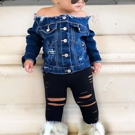 Children Baby Girl Sets White Shirts Dress Strapless Denim Solid Kids Girl Outfits Leggings Long Sleeve Clothes