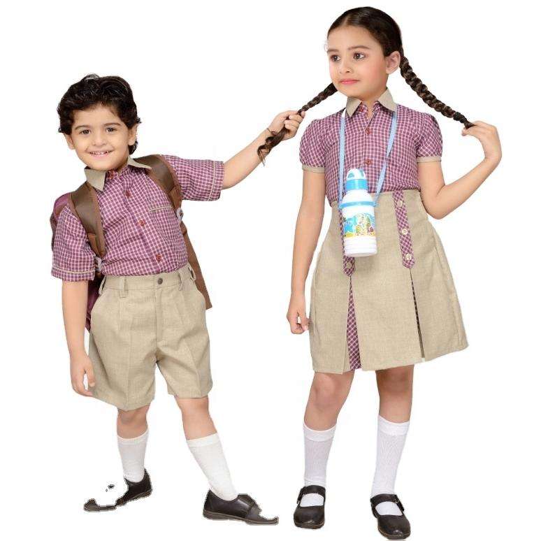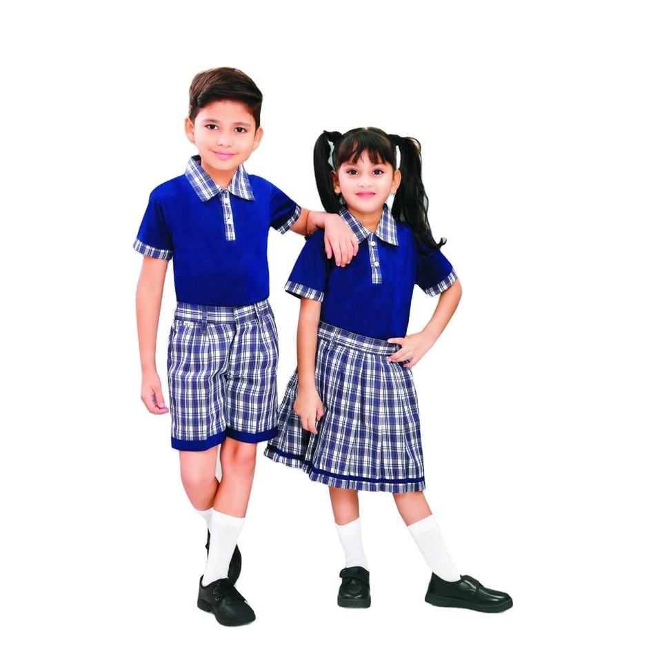 Children Primary School Uniforms Dress Set Unisex Polyester/Cotton Material Custom Logo Option White T-shirt & Navy Skirt/Shorts