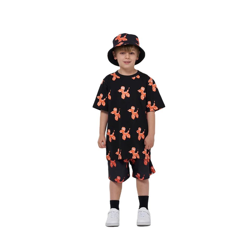 Children ShortsSet Cotton Spandex All Over Printed T shirt Shorts & Bucket Hat Set 2pcs Breathable Streetwear Boys Clothing Sets