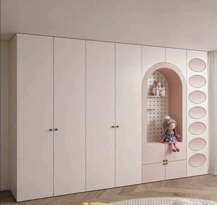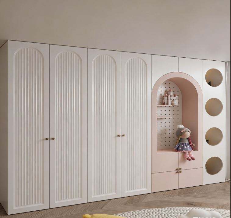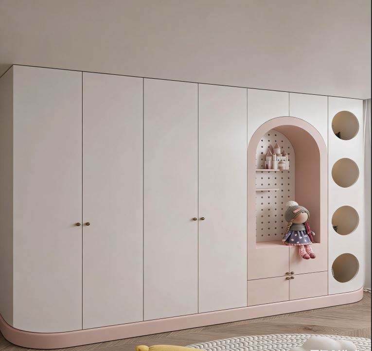 Children Storage Wardrobe Colorful Design With Safety Edges Sliding Doors and Multiple Shelves for Kids Bedroom Furniture