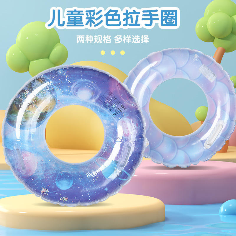 Children Swim Ring Inflatable PVC Thickened Anti Tipping With Handle For Water Sports Cartoon Pattern Round Shape