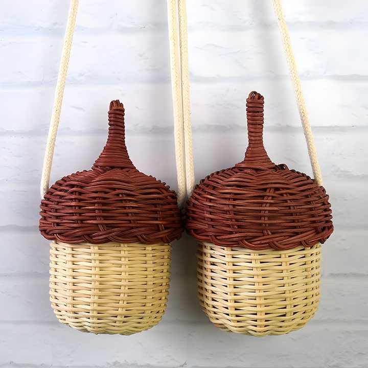 Children Baby Kids Hand Made Bag Top Selling Small Acorn Rattan Bags for Girls FBA Support