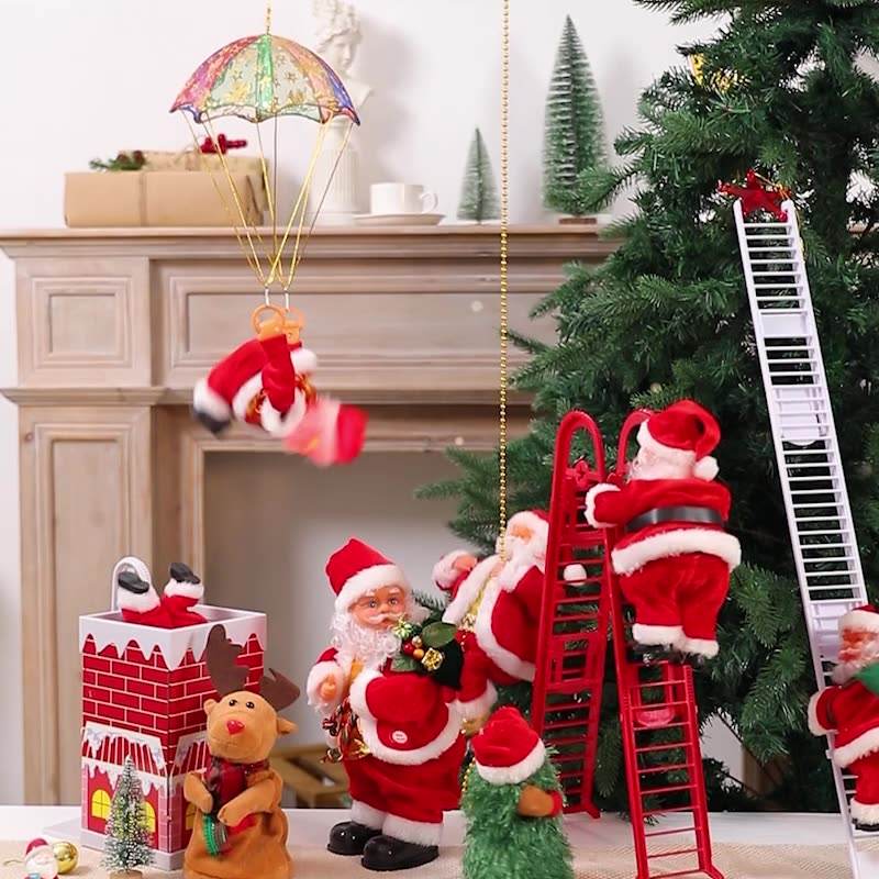 Children's Christmas Decorations Electric Music Beads Climbing Ladder Toy Creative Santa Claus Doll Gift Product