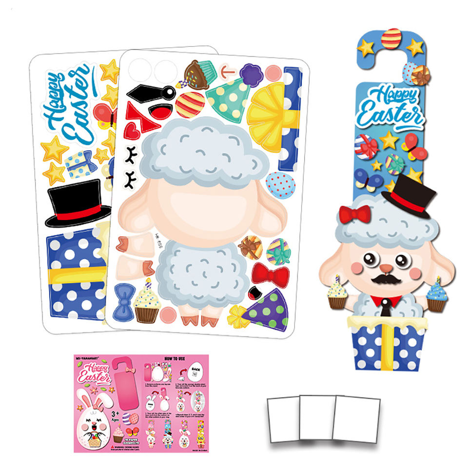 Children's Easter Hands-on Toy Cartoon 3D Paper Egg Decoration Door Hanging Bunny Egg Knob Hanger DIY Easter Ramadan Decorations