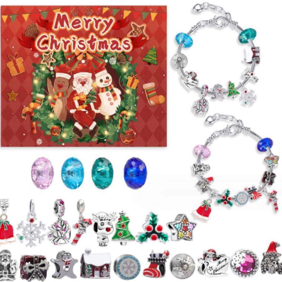 Children's Handmade 24-Grid Christmas Countdown Puzzle Blind Box Bracelet Jewelry Gift Box Making Kit DIY Beaded Bracelet Set