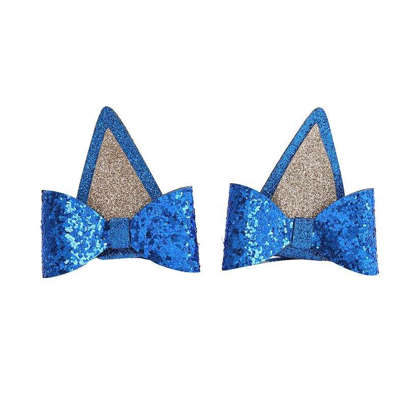 Children's Three-Dimensional Princess Party Headwear New Cute Shiny Cat Ear Bow Butterfly Clip with Pearl for Festivals Girls