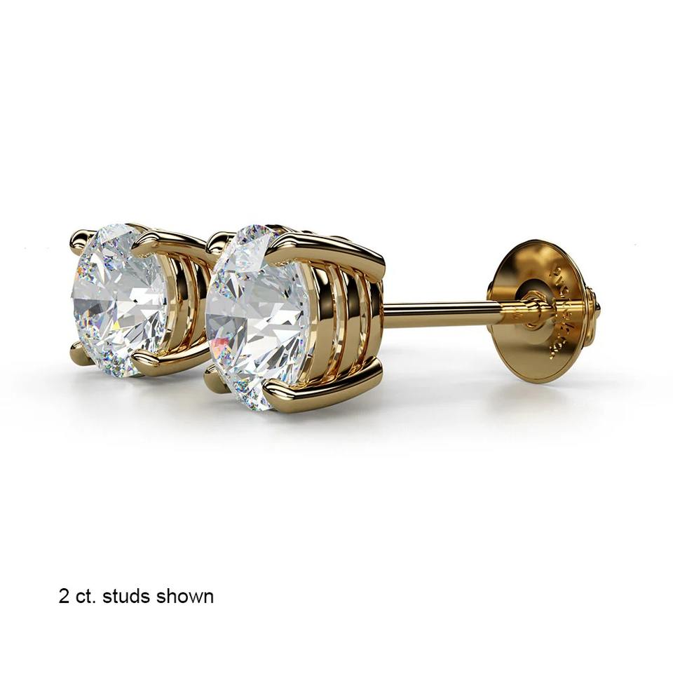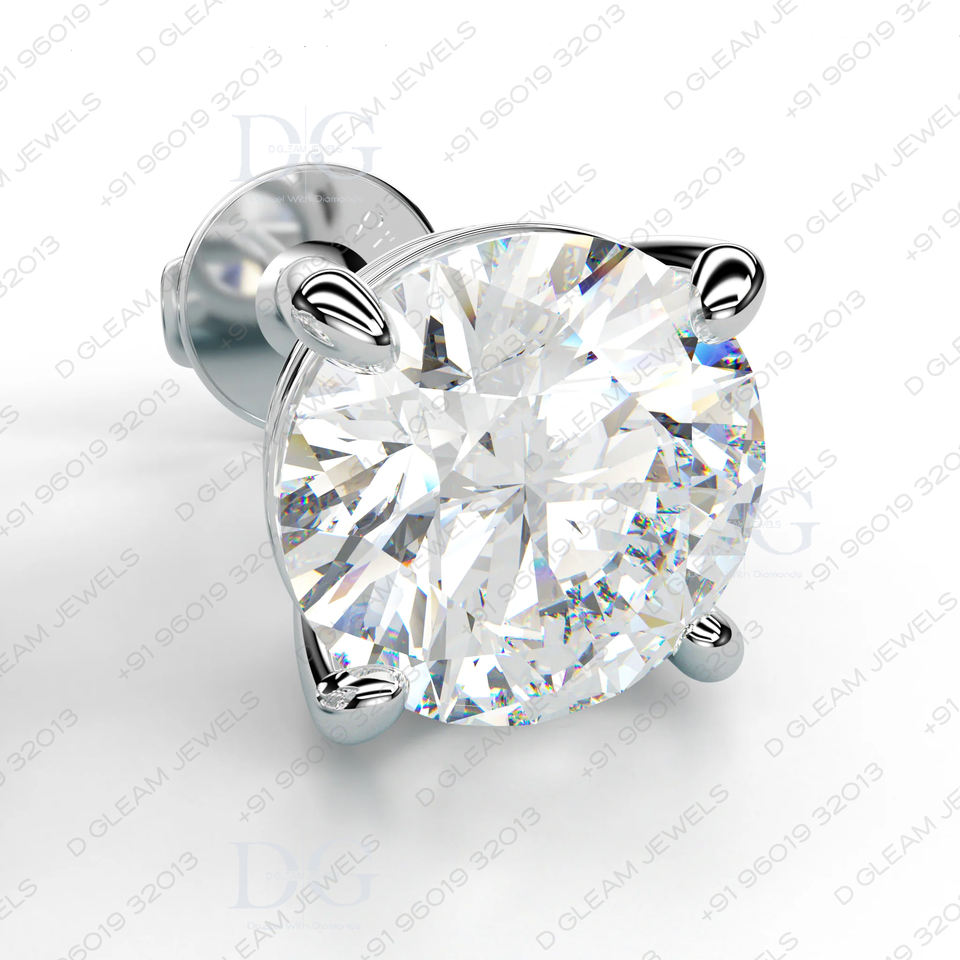 Children's White Gold Rose Gold 4 Prong Three Rail Set Trendy 2 Ct Moissanite Diamond Stud Earrings for Wedding Anniversary
