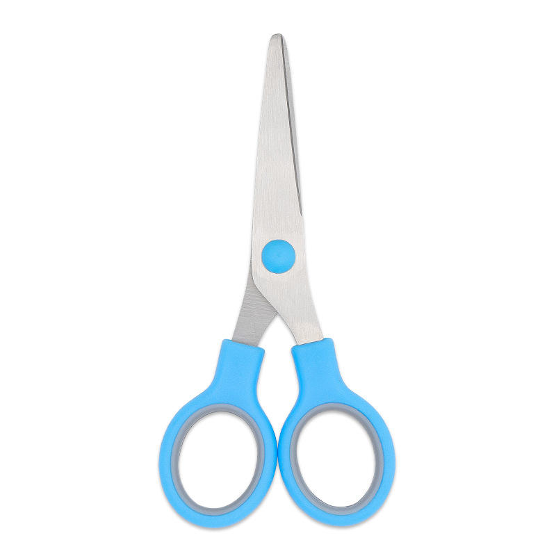 Childrens And Students Scissors 5 Inch Stainless Steel Round Pointed Paper Cutting For Home Office Use Blue Gray
