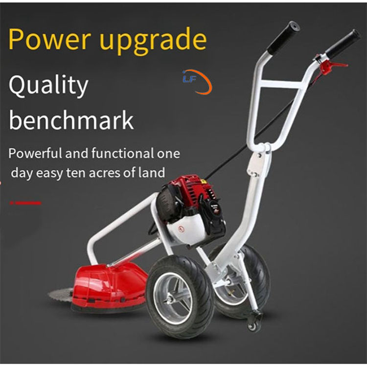 China Cheap Price 52cc Gasoline Type Trolley Hand Push Brush Cutter with Wheels Lawn Mower