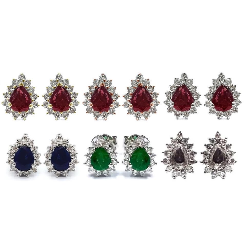 China Direct Factory Pretty High Quality 18k Solid White Gold Real Diamond Round Pear Ruby Centre Classic Studs Earring For Lady