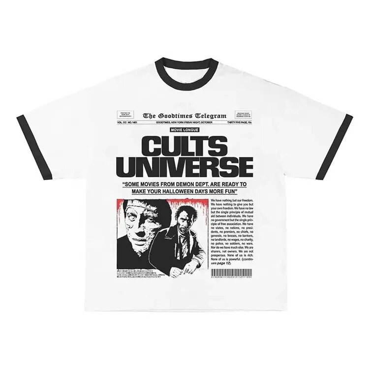 China Factory 100% Cotton T-shirt Contrast Roller Neck Retro Short Sleeve Tshirt Ringer Tee Printed T Shirt for Men