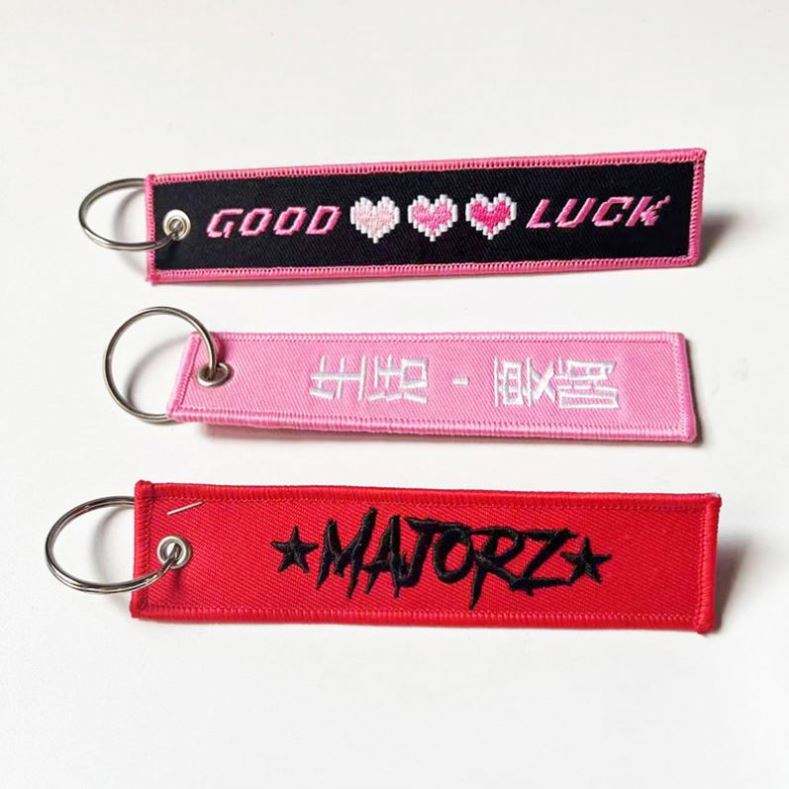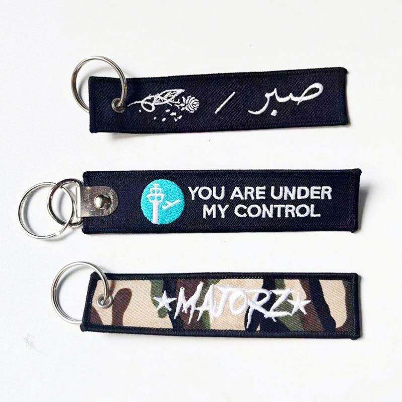 China Factory Custom Flight Embroidery Keychain Woven Key Tag With Your Own Logo