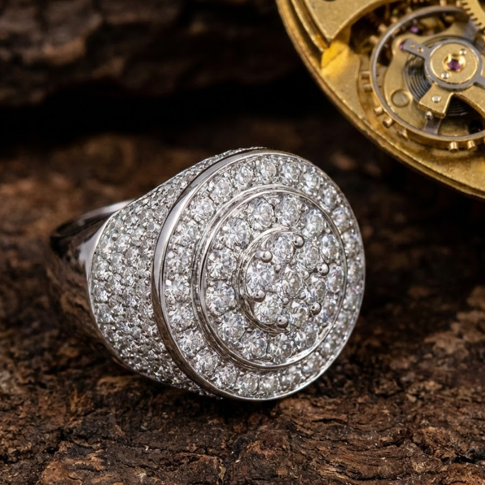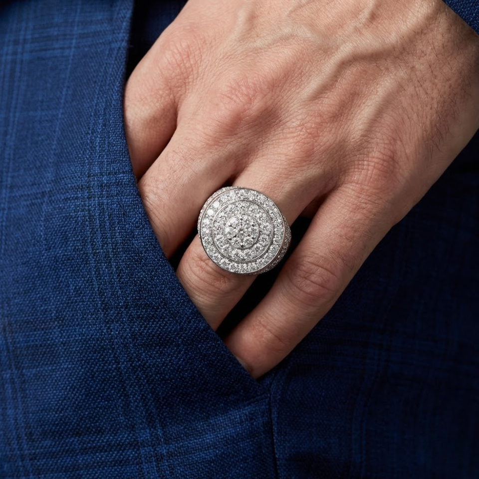 18k Diamond Baguette Cluster Men Ring