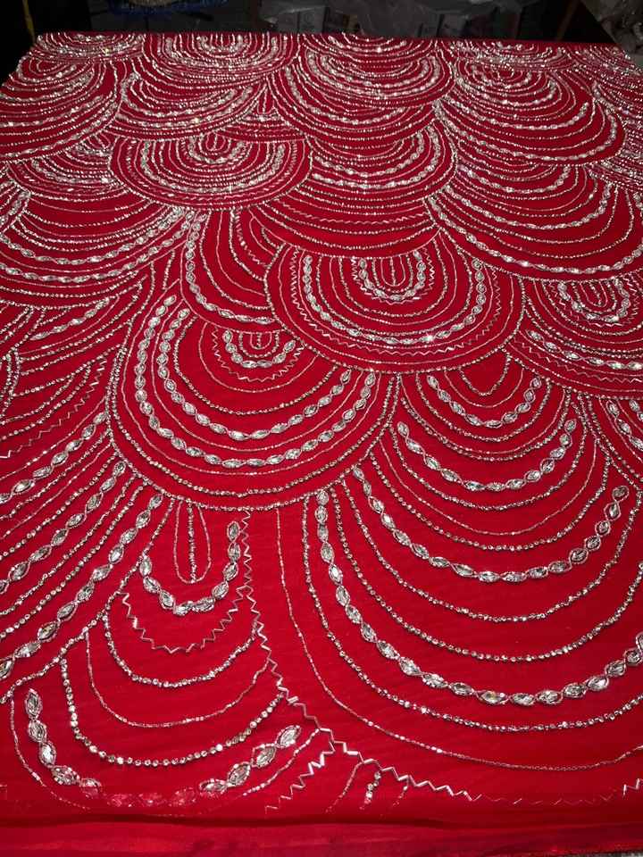 China Factory Price Breathable Dot Pattern Sequin Beaded Lace Fabric Blue Polyester/Metallic Wedding Dress Material Reasonable
