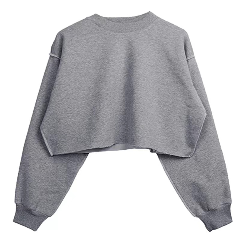 China Factory Ready to Ship Top Quality Ladies Sexy Modern Plain Color Womens Casual Crop Crew Neck Fleece Blank Sweatshirt