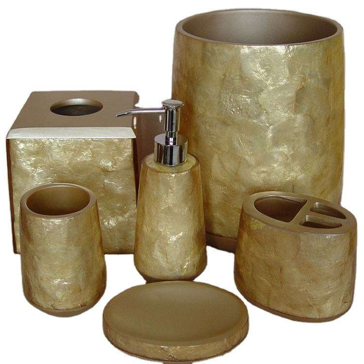 TIMELESS CRAFT China Luxury Capiz Resin Mother of Pearl Eco-Friendly Classic Bathroom Accessories Set