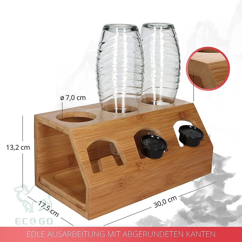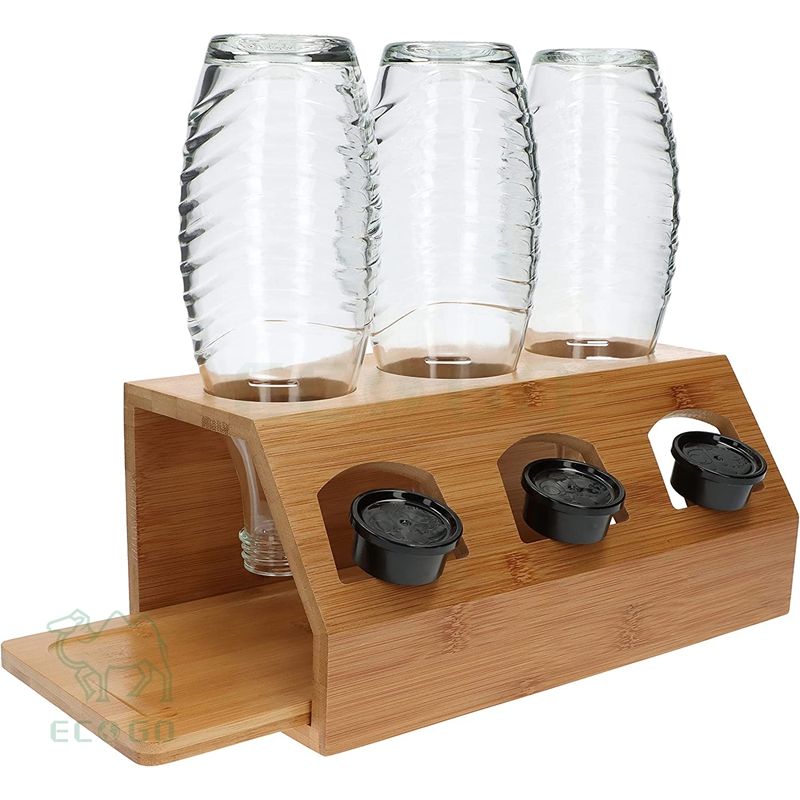 China Made Bottle Holder Dish Drainer Bottle Stand Made of 100% Natural Bamboo Soda Stream Drip Container for Kitchen