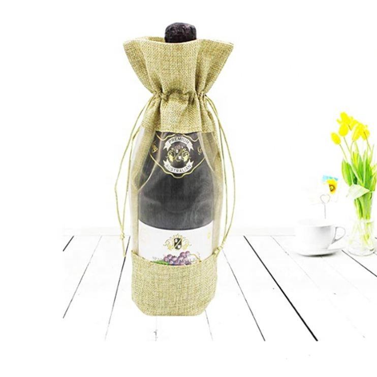 China-Made Eco-Friendly Jute Gift Bag Small Drawstring Wine Bag with Letter Pattern