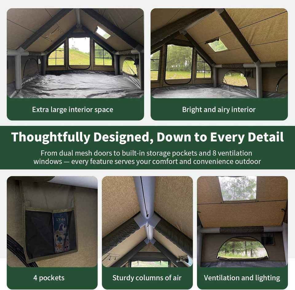 China Manufacture Oxford Portable Double Layer Air Tent 12 Sqm Inflatable Waterproof Camping Tent with Quick Setup