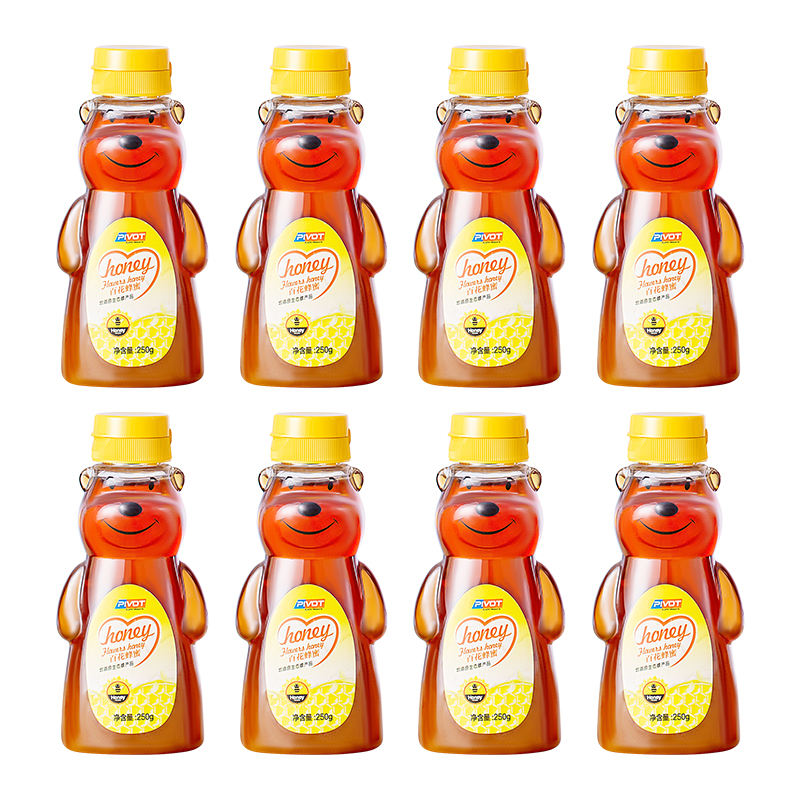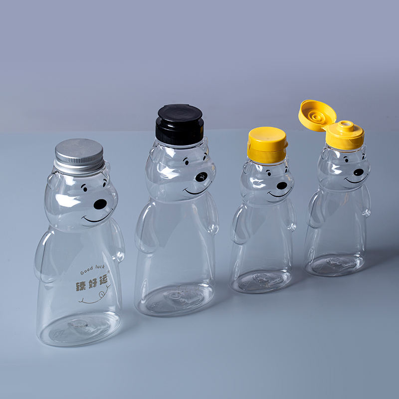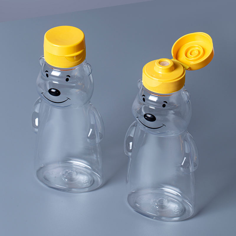 China Manufacturer 250g 500g 12oz PET BPA Free Squeeze Jam Syrup Plastic Bear Honey Bottle Squeeze Jar
