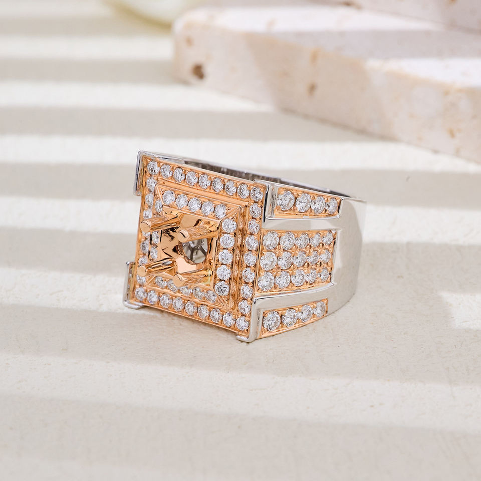 China Men High Quality 18K White Rose Gold Diamond Semi Mounting Wedding Engagement Ring for Certified Classic Birthday Gift