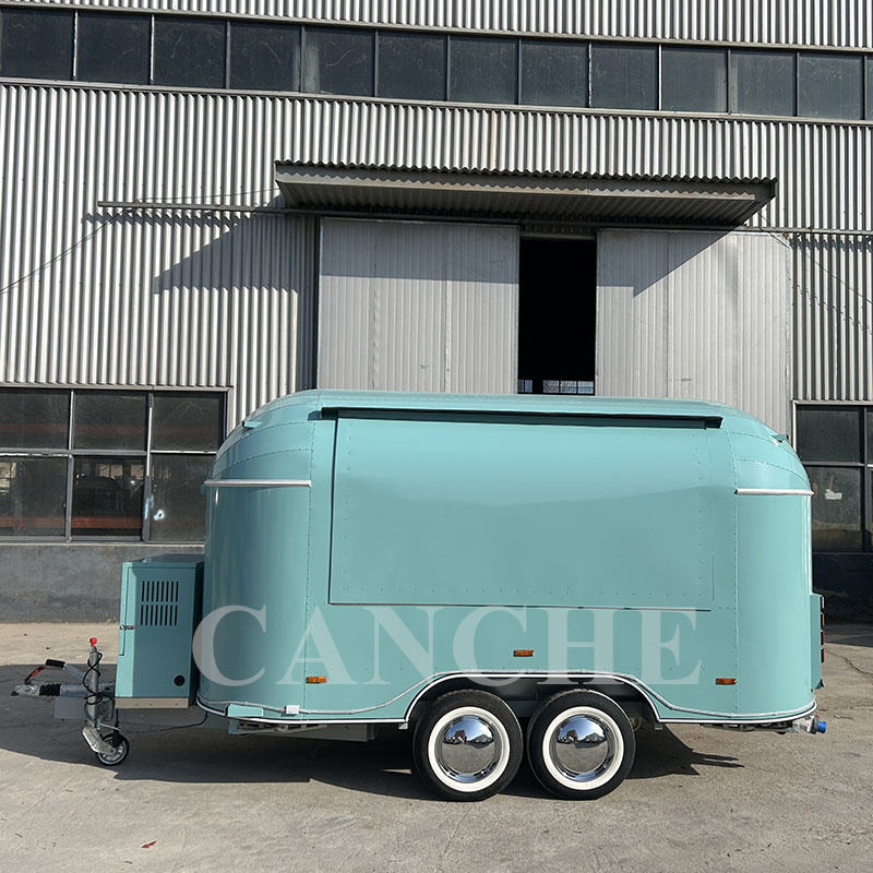 China Supplier Street Outdoor 4m Mobile Food Cart Fast Food Truck Green Food Trailer With Cooking Equipment