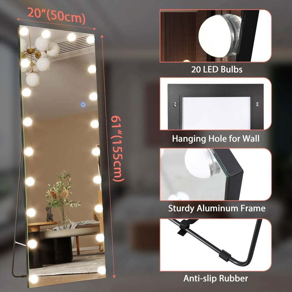 High Quality Thickened Version Big Factory Good Price Rustic Decor Wall Mirrors Matte Black Aluminum Frame Full Length Mirror Led Living Room Furniture Custom