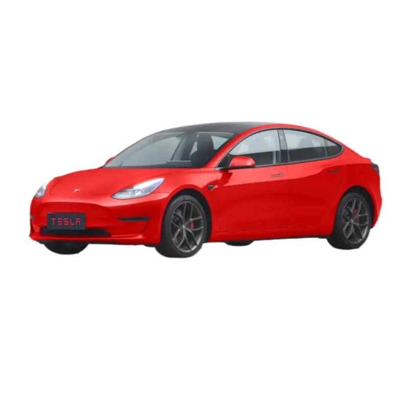 China's New Energy Electric Car Red Tesla Model 3 Sedan 675km Range 486ps Motor with Lithium Battery Left Steering