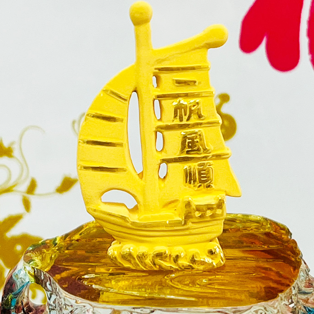 Chinese Art Gold Foil Sailboat Decoration Liuli Craft Feng Shui Fortune Figurine Office Decor