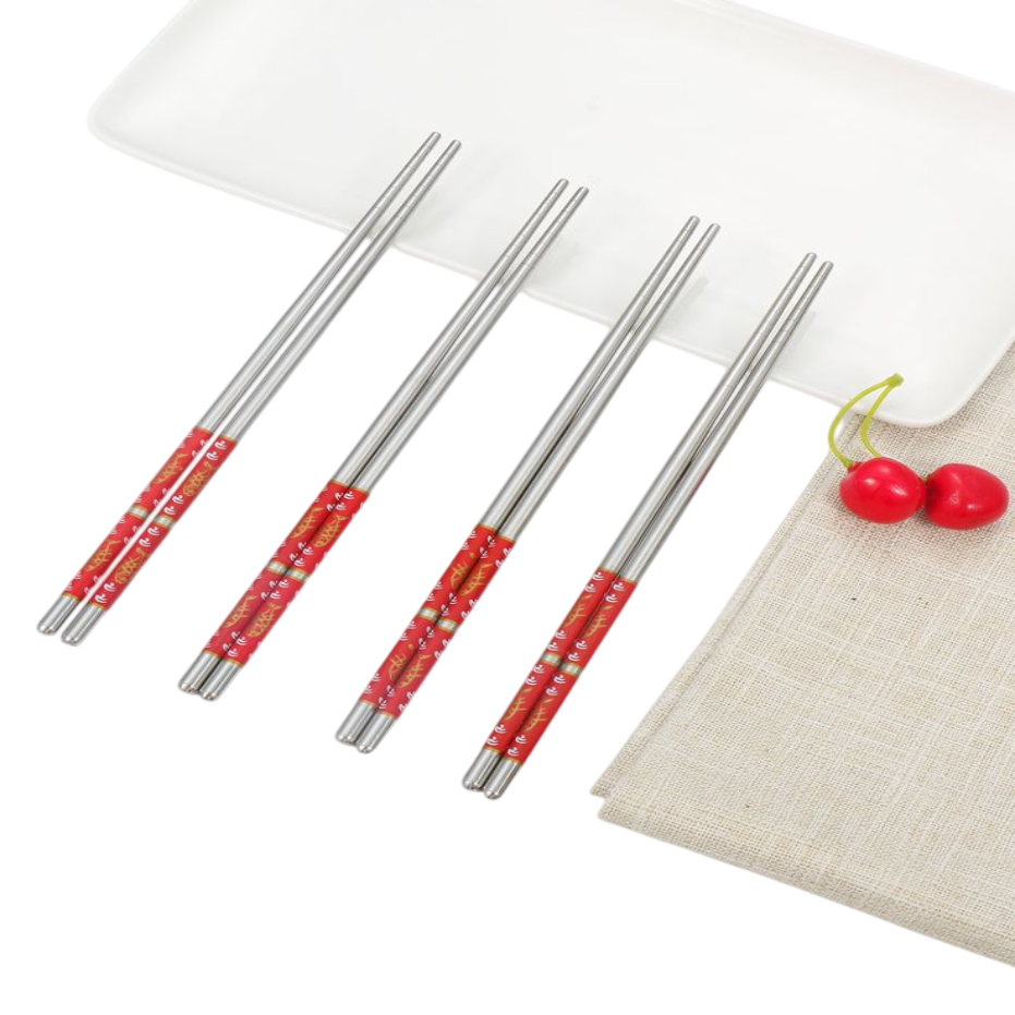 Chinese Chopsticks Stainless Steel Reusable Sushi Sticks Silver Titanium Chopsticks Set With Premium Quality