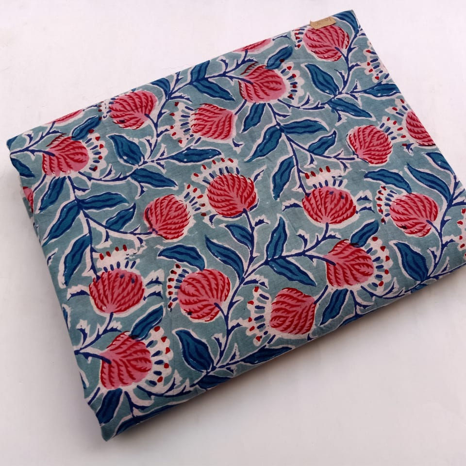 Chinese Flower Printed Fabric in Hand Block Print in Pure Cotton