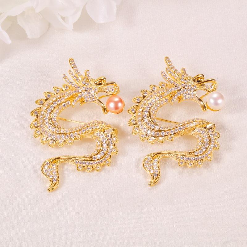 Chinese Loong Diamond-Inlaid Men's Suit Brooch Freshwater Pearl Corsage Accessories for Wedding Jacket Fine Brooches