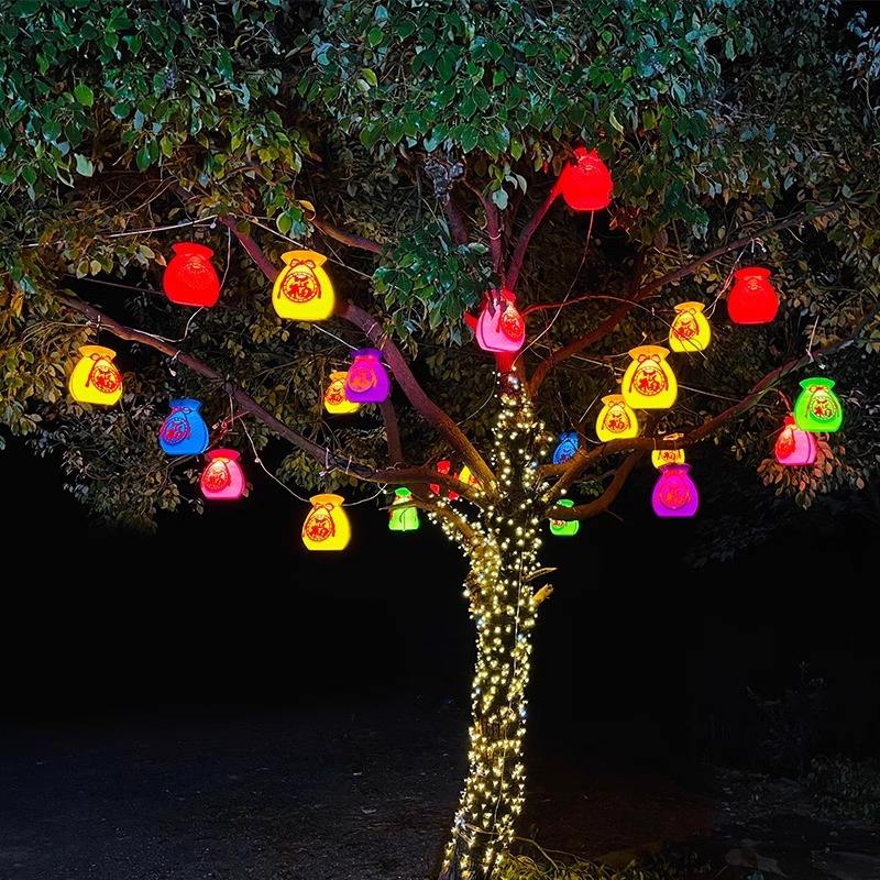 Chinese New Year Starry Sky Tree LED Lantern Colorful Lucky Bag Light Money Bag Outdoor Hanging Decoration