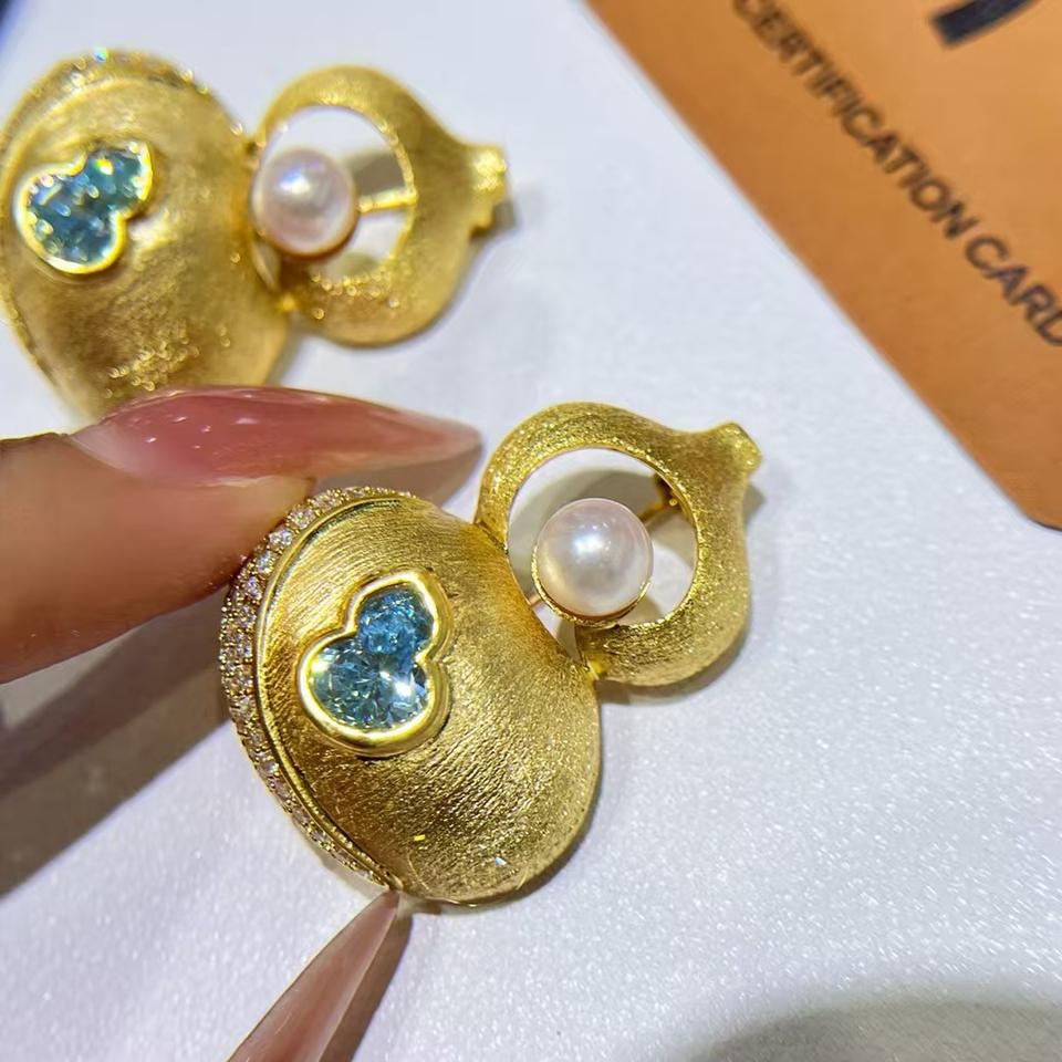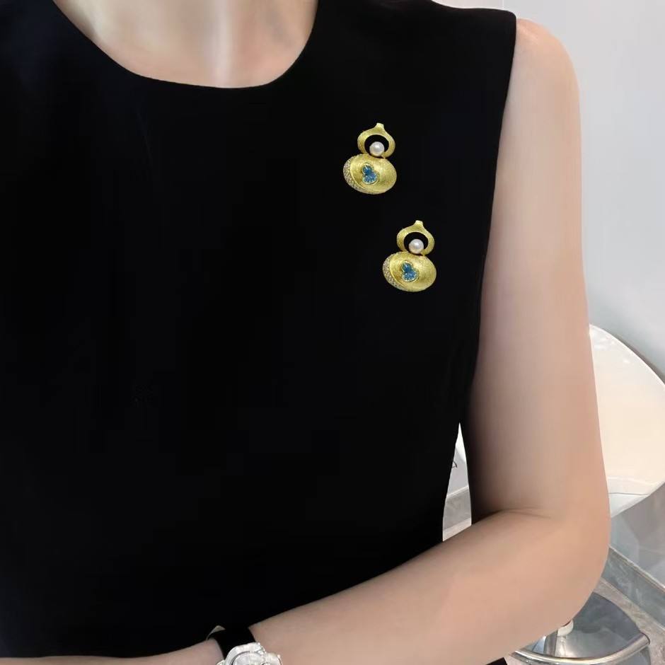 Chinese Retro Style Women's Fashion Brooch Treasure Gourd with Sea Water Akoya Simple Winter Tampemance Chest Jewelry