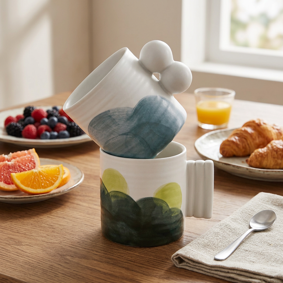 Chinese Style Cute Cartoon/Floral Pattern Pure Hand-painted Finland Personalized Underglaze Color Porcelain Mug Dishwasher
