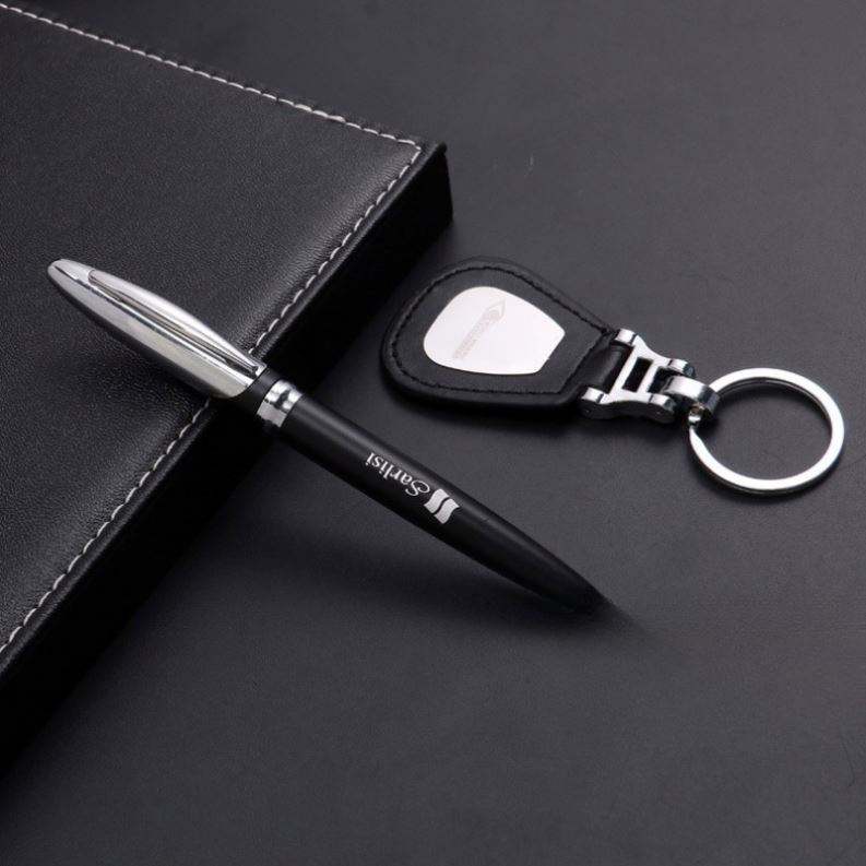 Chinese Style Keychain & Pen Gift Set - Elegant Leather Keyring & Signature Pen for Business Gifts & Favors