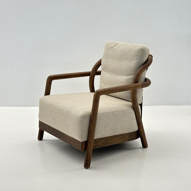 Chinese Style Leisure Chair Solid Wood Base Chairs Curved Backrest Lazy Lounge Chair for Living Room Home Office Reception Chair