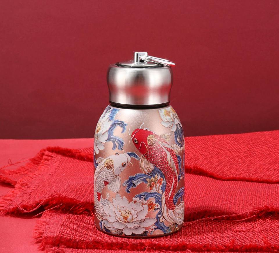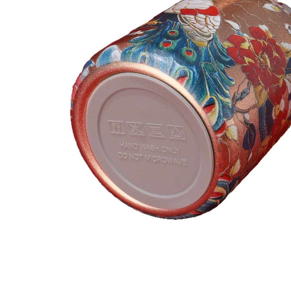 Chinese Style Pocket Tumbler 316 Stainless Steel Peacock Butterfly Print Travel Cup Vacuum Insulated Hot Cold Flask
