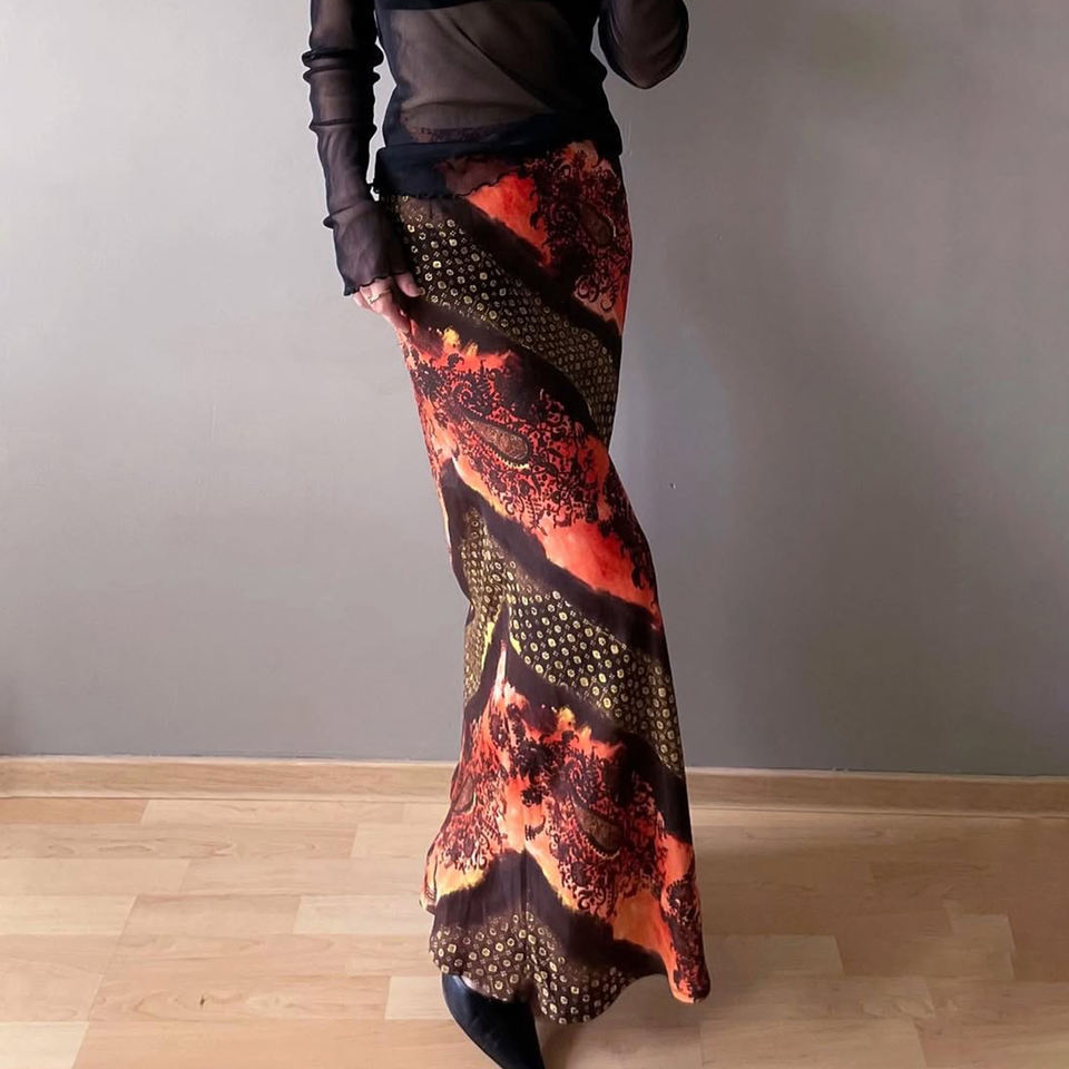 Chinese Style Retro Knee-Length Skirt for Women Breathable Mesh Natural Waist Autumn Beach Dress Vintage Resort Vacation Wear