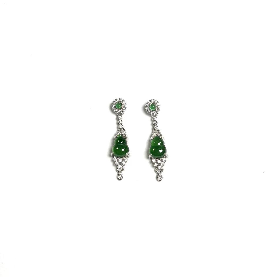 Chinese Style S925 Pure Silver Dangle Earrings Natural Sunny Green Jade Gourd Inlaid with Ice Jade Fulu National Style