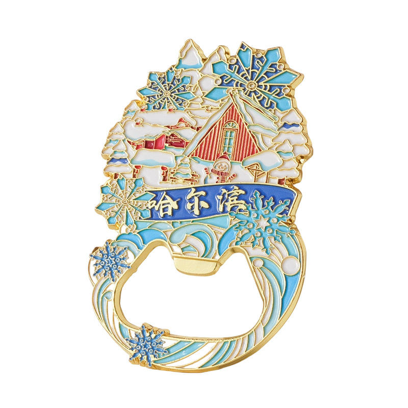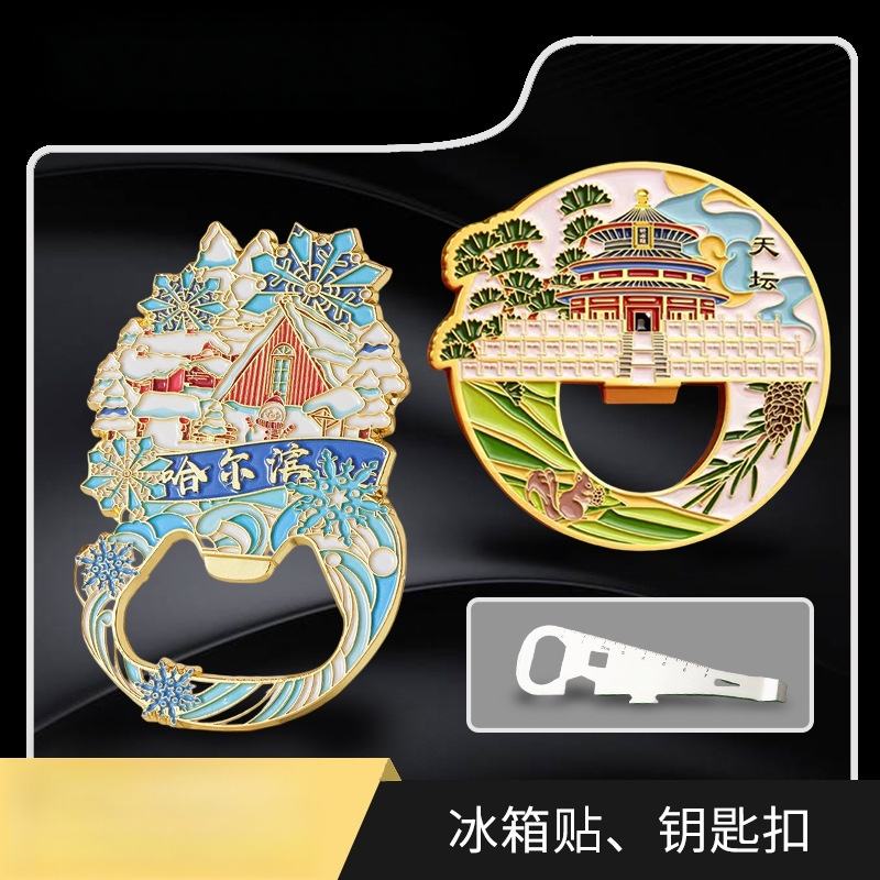 Chinese Style Scenic Spot Bottle Opener Metal and Silicone Advertised Refrigerator Sticker Beer Opener Gift