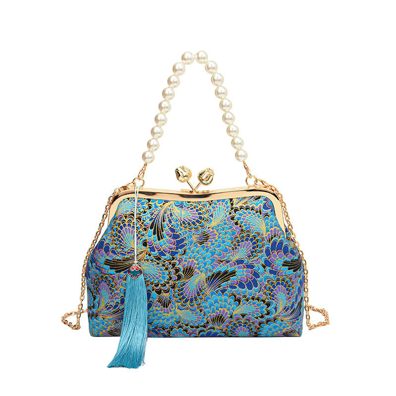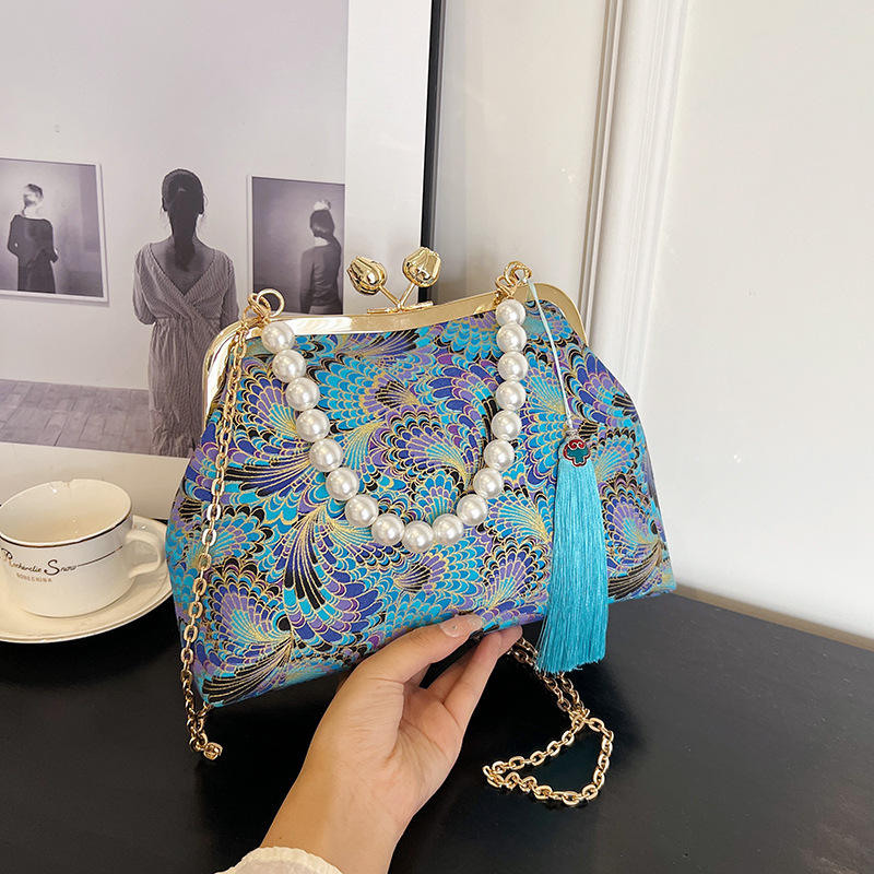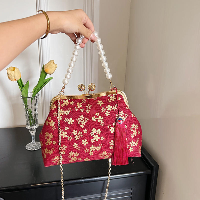 Chinese Style Shell Bag Red Pearl Handle Chain Shoulder Bag Fashionable Evening Bag