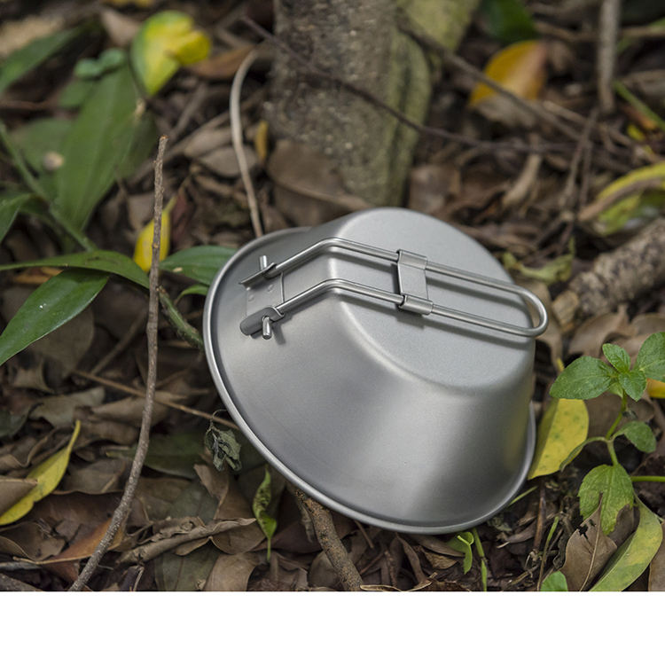 Chinese Supply Eco Friendly Lightweight Titanium Salad & Noodle Bowl Luxury Serving with Folding Handle for Climbing Cookware